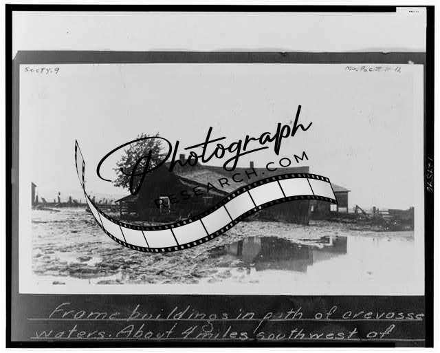 Frame buildings in path of crevasse waters, about 4 miles southwest of Cora City, Ill.