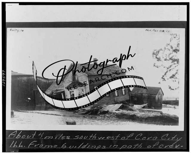 Frame buildings in path of crevasse waters, about 4 miles southwest of Cora City, Ill.