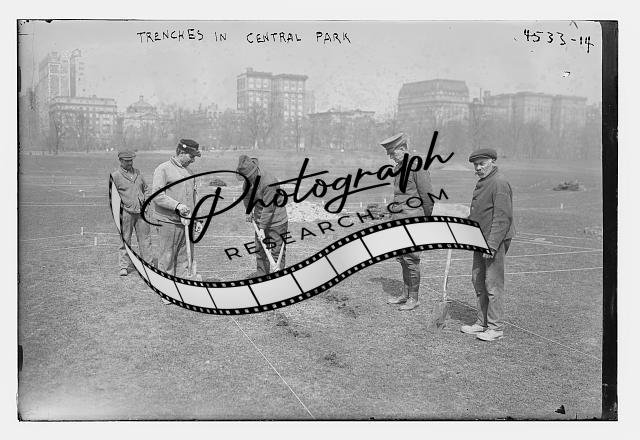 Trenches,digging,shovels,workers,uniforms,men,Central Park,Bain News Service