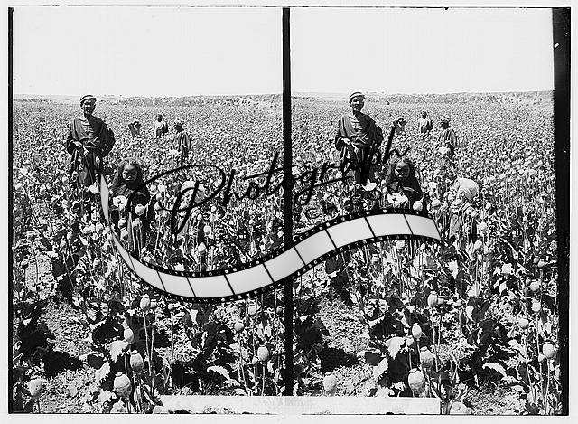 Egyptian characters,Gathering opium from seed pods of the poppy,Egypt,Africa