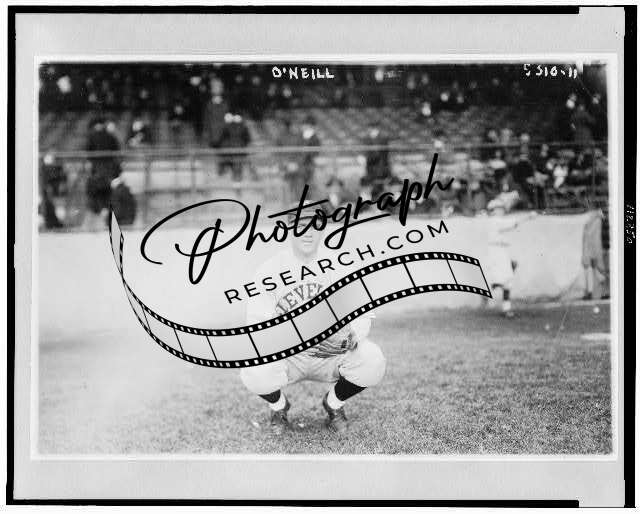 Stephen Francis O'Neill,1891-1962,Cleveland AL baseball player,squatting,field