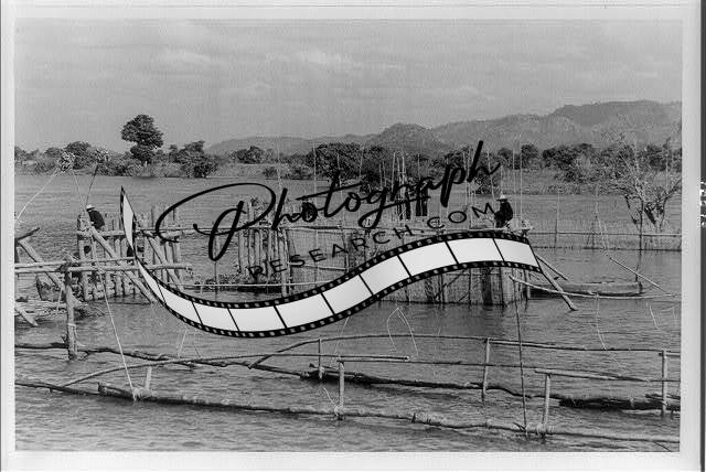 Fishermen,fish trap,wood,Tonlé Sap,basin,lake,lower Mekong River,Cambodia,1958