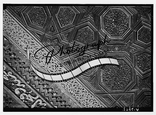 Title: El Aksa [i.e., al-Aqsa] Mosque. Cedar pulpit. Details of carving