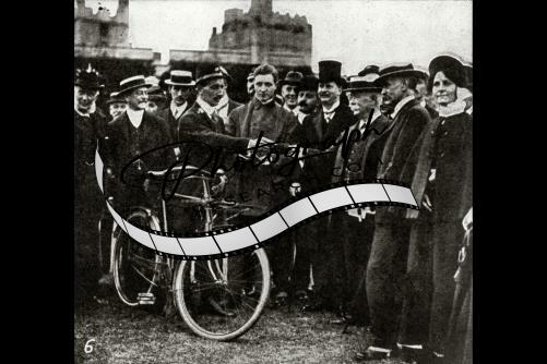 Postman with bike handing letter to King George V,1911