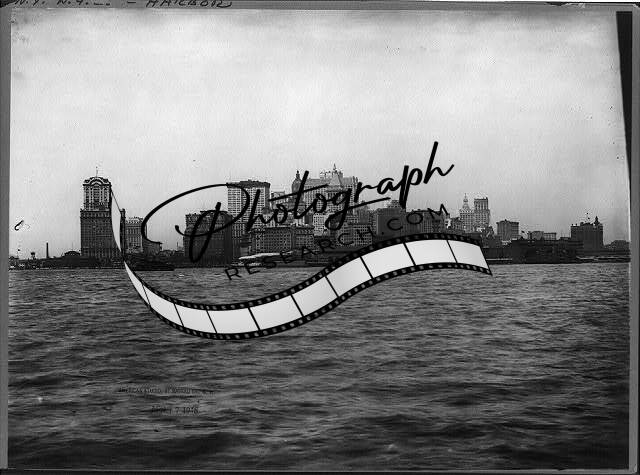 Looking north,bay,skyline,buildings,ocean,horizon,roofs,New York City,NY,c1916