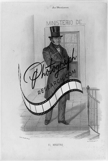 El ministro,Government official wearing top hat,walking stick,1855,briefcase