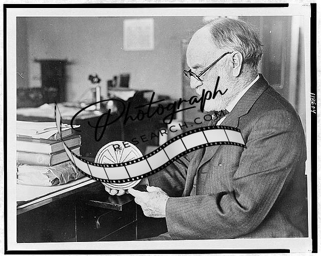 Dr. J. Walter Fewkes,examining disk showing figure entering maze,1918-1928