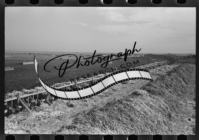 Title: Large stack of kaffir corn to be used for feed for cows at dairy. Tom Green County, near San Angelo, Texas