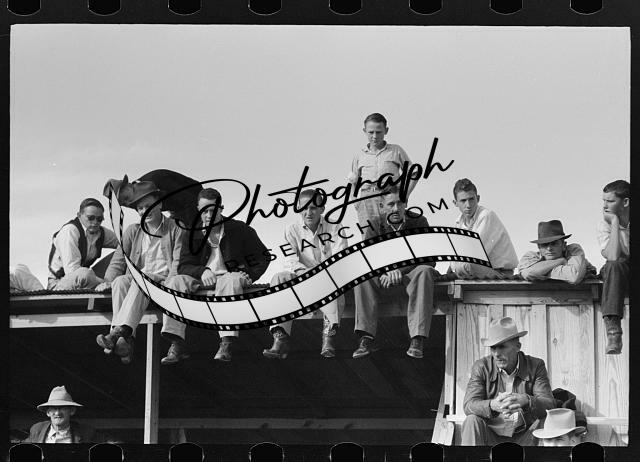 Title: West Texan and his son sitting on fence at horse auction, Eldorado, Texas