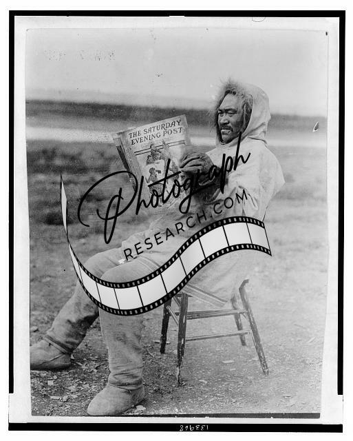Eskimo reading Saturday Evening Post in the arctic region,anorak,November 1913