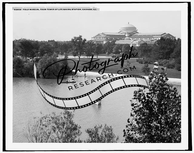Field Museum,tower,life saving station,parks,water bodies,Chicago,Illinois,c1907