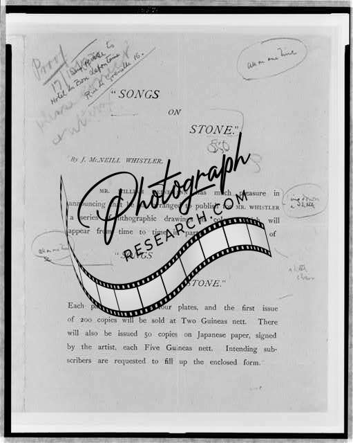 Photo of Whistler ephemera,'Songs on Stone' announcement,1892