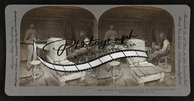 Sawing a stone with cross-cut saw, for the restoration of the cathedral, Trondhj
