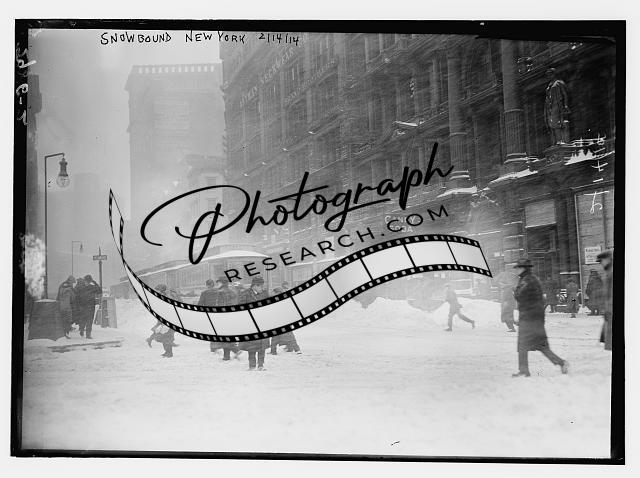 Snowbound,N.Y.,New York,February 14,1914,trolley car,snow,people,winter,Stores