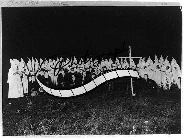 "Citizens of the Invisible Empire" initiate class on hill near Homestead, Pa. KKK