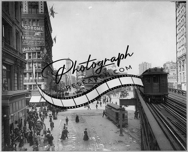 Herald Square,New York City,NYC,Elevated Railroad,RR,c1908,Trolley Car