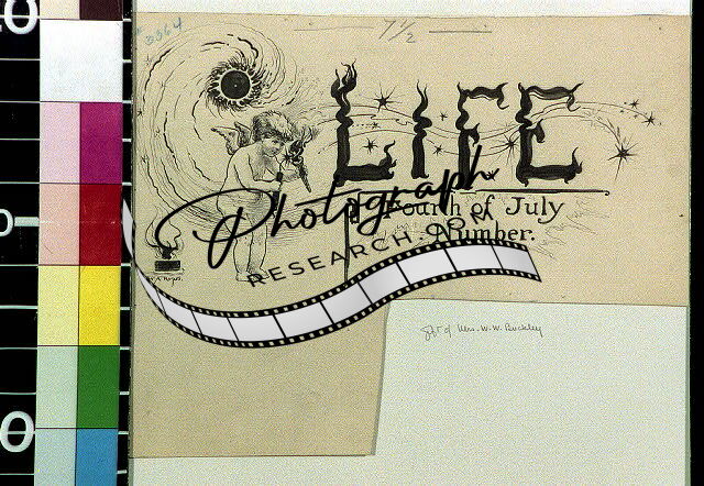 Cherub lighting firecracker,torch,stars fly,word 'Life',William Allen Rogers