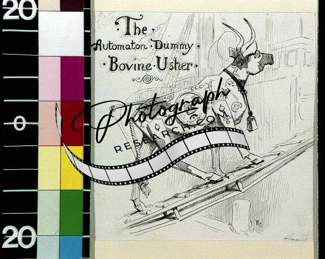 Robot cow walking up ship plank,William Allen Rogers,1886?,Cattle,Robot,Dummy