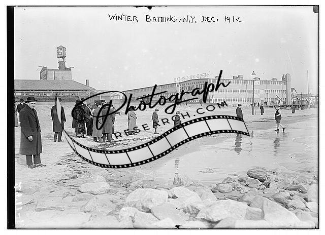Winter Bathing,N.Y.,December 1912,New York,Parkway Baths,people,shoreline