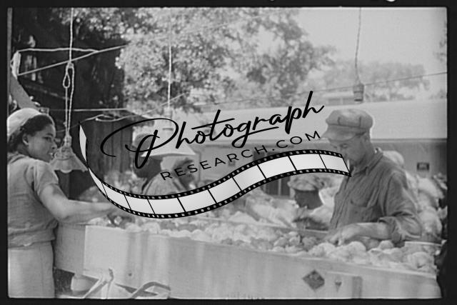 Title: An outdoor potato grader using migratory labor. At the freight station in Elizabeth City, North Carolina