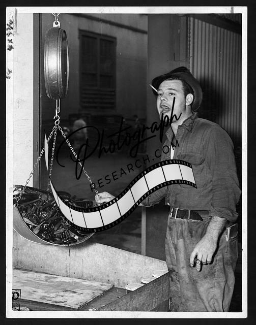 Fish instead of meat,seafood,Fulton Fish Market,Bronx,New York,NY,1946,men