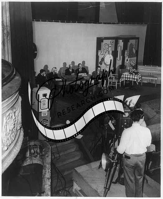 We the People,TV program,cast,cameraman,c1949,gas pump
