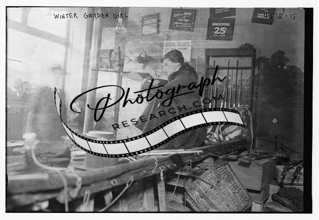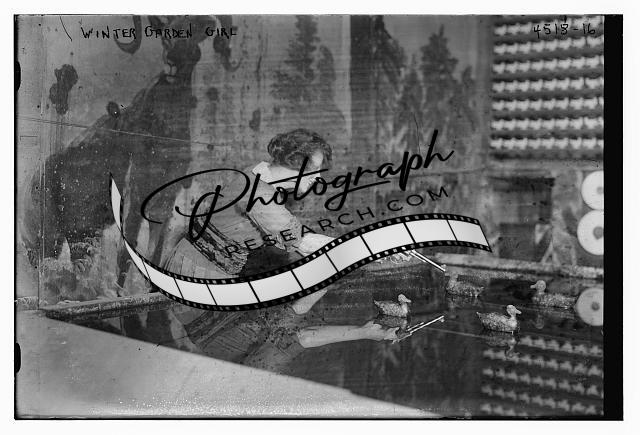Winter Garden Girl,woman pointing hand gun at toy ducks,Bain News Service