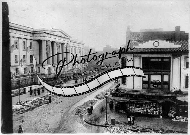 Corner of 9th & G Streets,N.W.,Washington,D.C.,1920s,Dentist,Trolley cars,snow