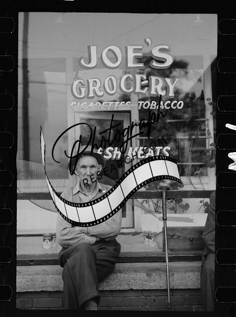 Man in front of grocery store,Elkins,West Virginia,WV,Joe's Grocery,Tobacco,1