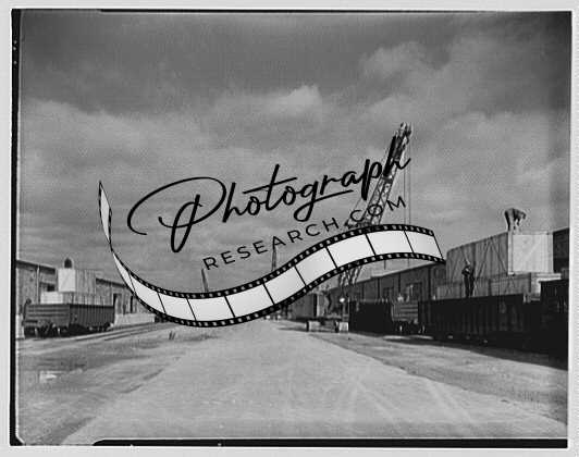 Title: Elmira Holding and Reconsignment Point, Elmira, New York. Two cranes at warehouse, close up