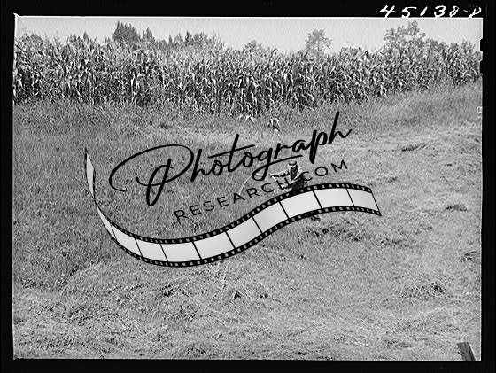 Title: Gathering hay on the farm of Emanuel Rink, dairy farmer near Brookline, Vermont