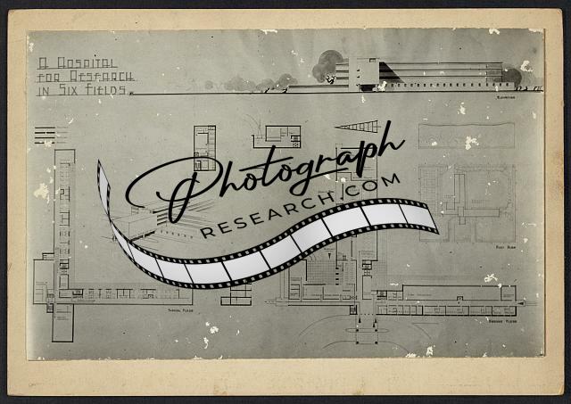 Hospital,research,six fields,Plans,elevations,perspective,Paul Rudolph,c1950