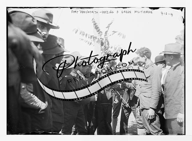 Fort Wadsworth,soldiers haze a new militiaman,June 1908