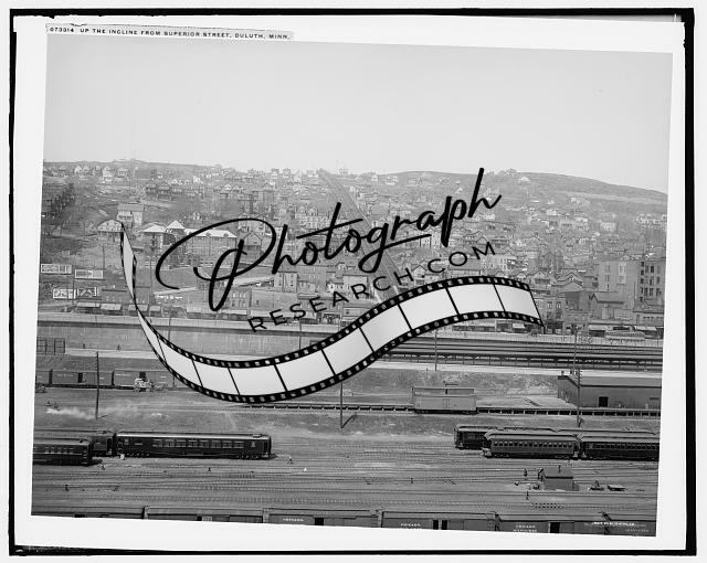Up inclined railroads,buildings,tracks,Superior Street,Duluth,Minnesota,MN,1910
