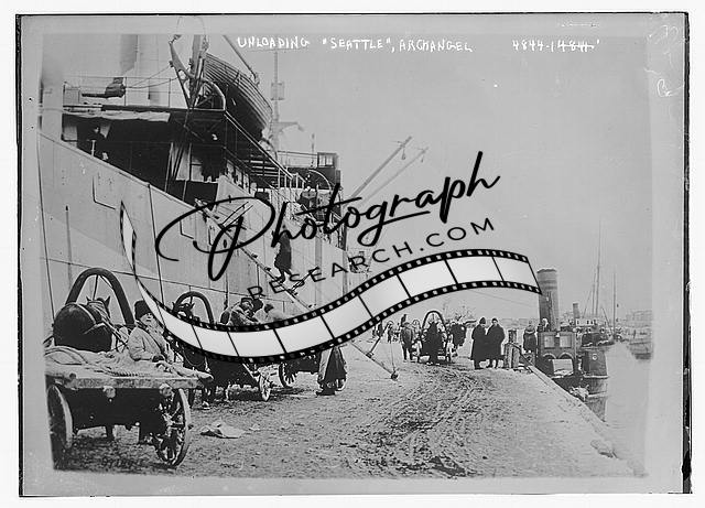 Unloading SEATTLE,wagons,carts,walls,streets,paths,Archangel,Bain News Service