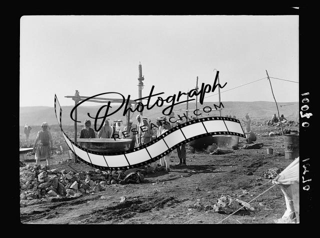 Title: Emir Saud's visit to Emir Abdullah in Amman. Large cauldrons in which mutton & camel meat is being cooked for the feast