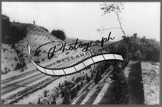 Road cut,Wisconsin,trees planted,bench terraces,wood,metal strips secured,1934