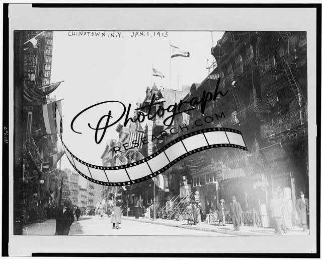 Chinatown,New York City,NY,Street scene,January 1,1913,Flags,buildings