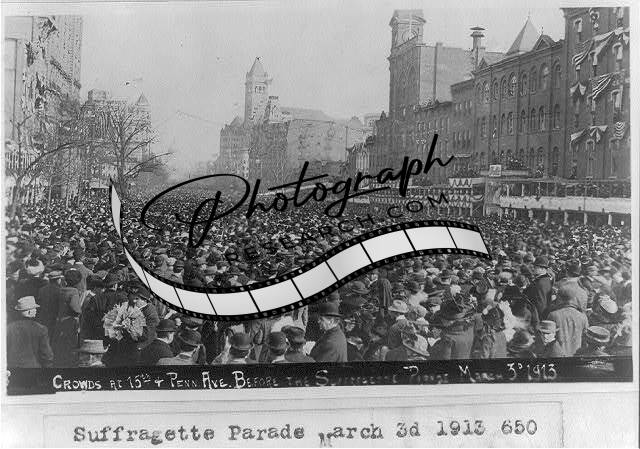 Crowds,15th & Pennsylvania Ave,before Suffragette Parade,March 3,1913,US flags