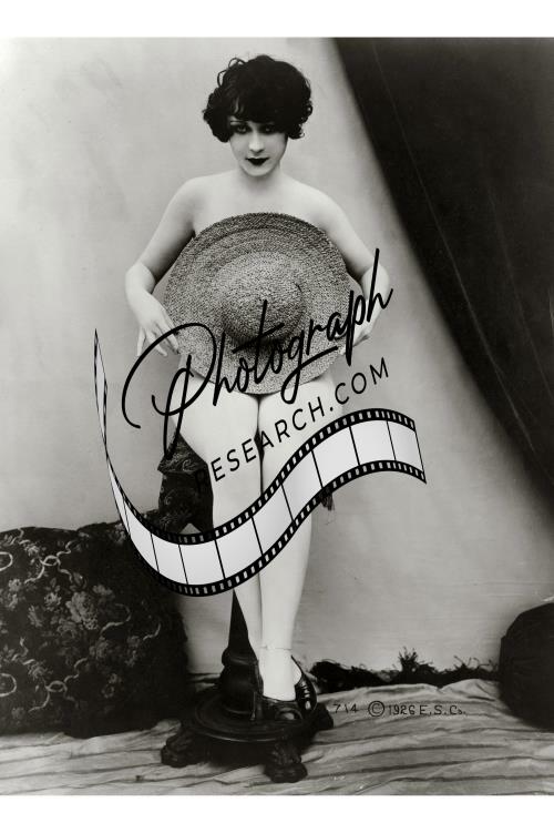 Miss Modesty,Young Woman,Erotica,posed nude behind straw hat,c1926