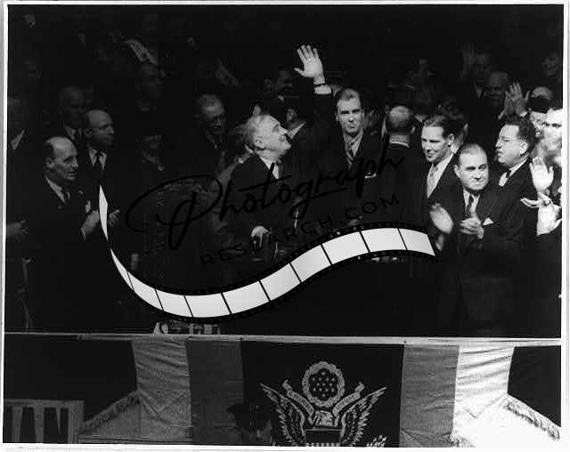 Franklin Delano Roosevelt,1882-1945; waving from speaker's podium