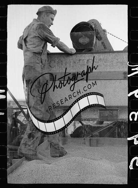 Emptying soy bean seeds from combine harvester,Grundy County,Iowa,IA,1939,FSA,3