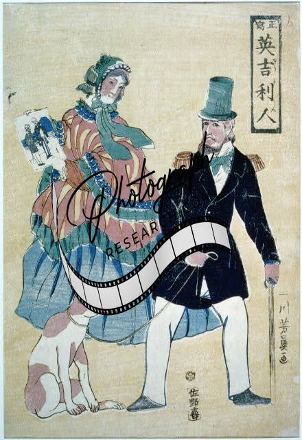 An English couple with a dog. Between 1850-70,photograph,Yoshikazu Utigawa