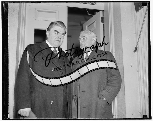 Title: A.F. of L. Head endorses Wagner Housing Bill. Washington, D.C., April 14. President William Green of the A.F. of L. discusses various phases of the Wagner $1,040,000,000 Housing Bill with Senator Robert F. Wagner (left) author of the bill, and Senator David [...] Walsh, Chairman of the Senate Subcommittee on Education and Labor. Green appeared before the Committee today to give his endorsement of the bill. Besides believing unemployment and eliminating slums, the measure will provide low-rent housing for the workers of the country in order that their purchasing power may not be curtailed as rents rise under an 'acute' housing shortage, Green told the Committee, 4/14/1937