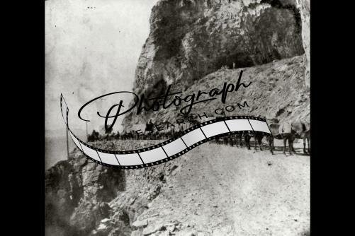 Cave Rock,Lake Tahoe,Nevada (view from the road),NV,1866,horses,wagons