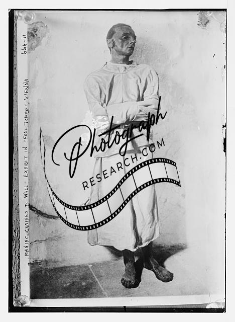 Maniac man chained to wall,exhibit in 'Fool Tower',Vienna,Austria