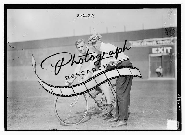 Joseph Fogler,on bicycle,cyclist,other man,possibly cyclist Alfred Goullet,1913