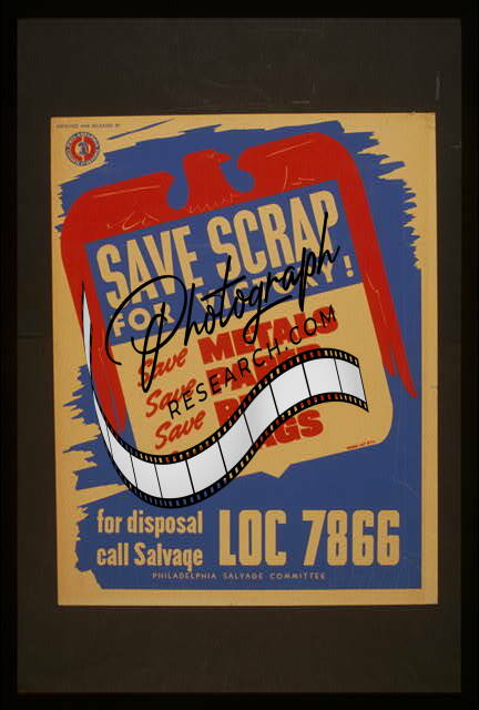 Save Scrap for Victory,Save Metals,Paper,Rubber,Rags,War Effort,Philadelphia,PA