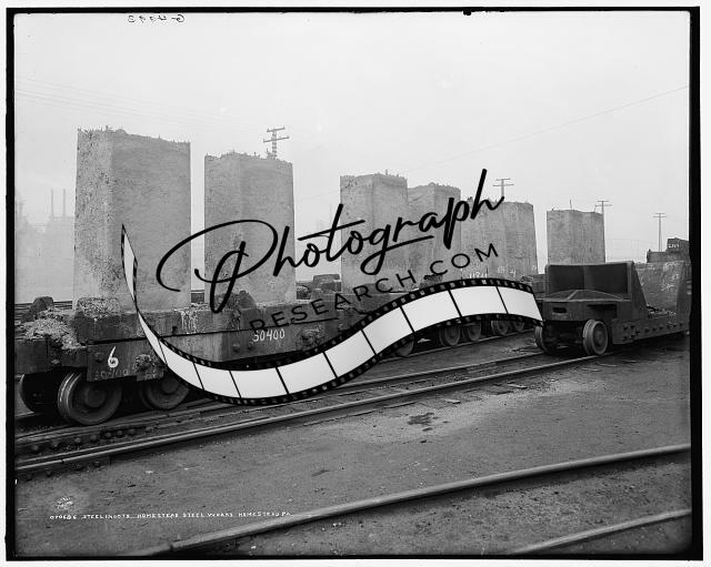 Steel ingots,Homestead Steel Works,industrial buildings,cars,Pennsylvania,1900