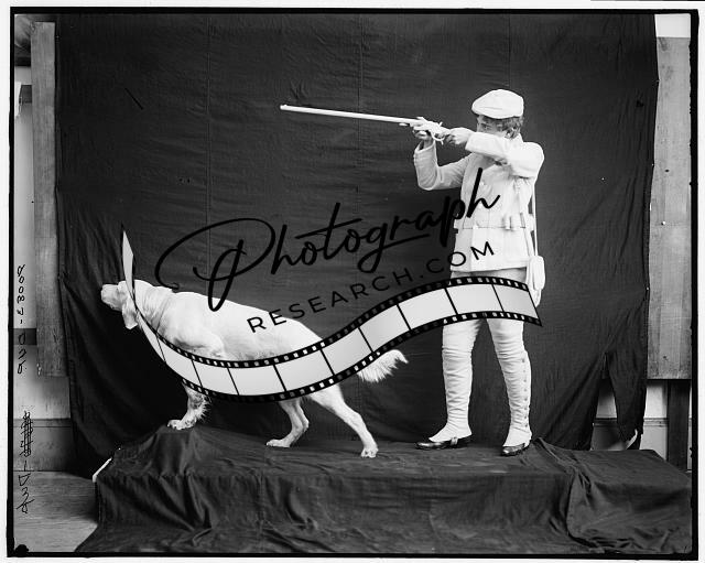 Flushed Billy,hunting pose,artists models,statues,dog,man,hunter,clothing,1900